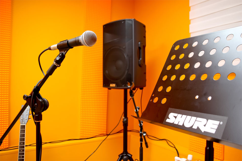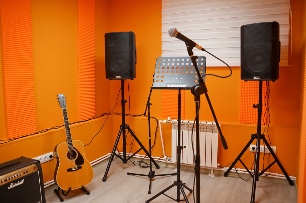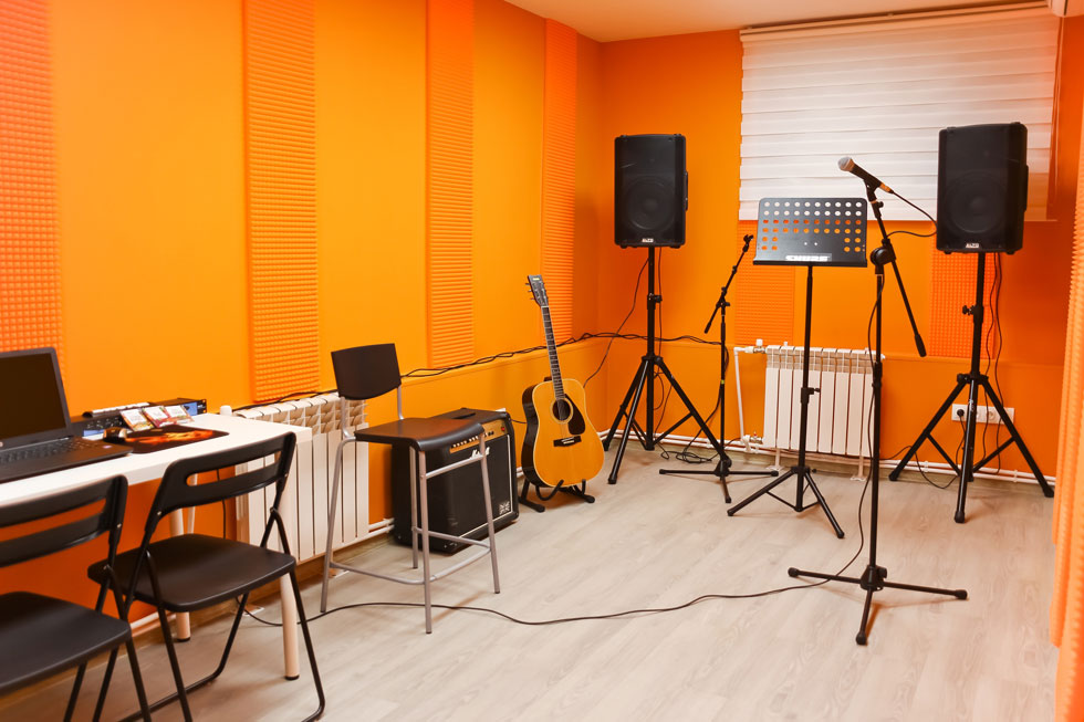 Правильная акустика. Помещения школы, студии звукозаписи и репетиционной базы выполнены по оригинальному проекту из специальных акустических материалов.